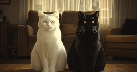 에디터는 고양이 두 마리가 움직이는 영상을 만들기 위해 먼저 이미지를 생성해 봤습니다. 4장의 이미지 중에서, 고양이의 모습이 실제와 가장 가깝고 한국 가정집 특유의 느낌을 잘 살려낸 두 번째 사진을 영상화하기로 결정했어요.